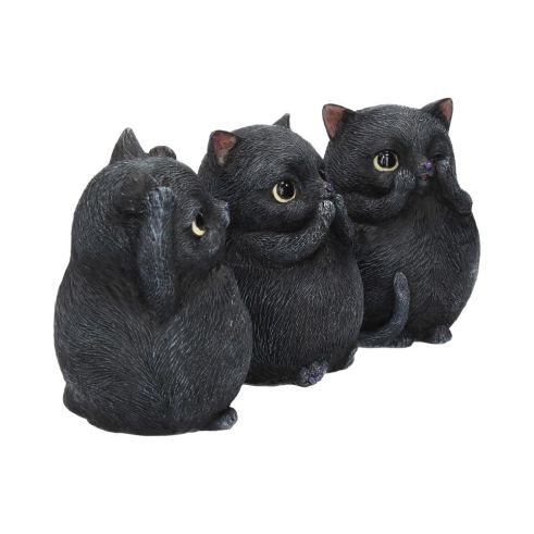 Created by alternative brand Nemesis Now, these rotund cats come from our fantastic in-house design team. Sitting side by side, these three wise kitties look up with adorable eyes and purple heart-shaped noses. One clasps their paws to their mouth, one blocks their ears, and one covers their eyes, sneaking a peek regardless. Cast in the finest resin before being lovingly hand-painted, these adorable animals are the perfect illustration of Confucius's famous maxim: See no evil, hear no evil, speak no evil.